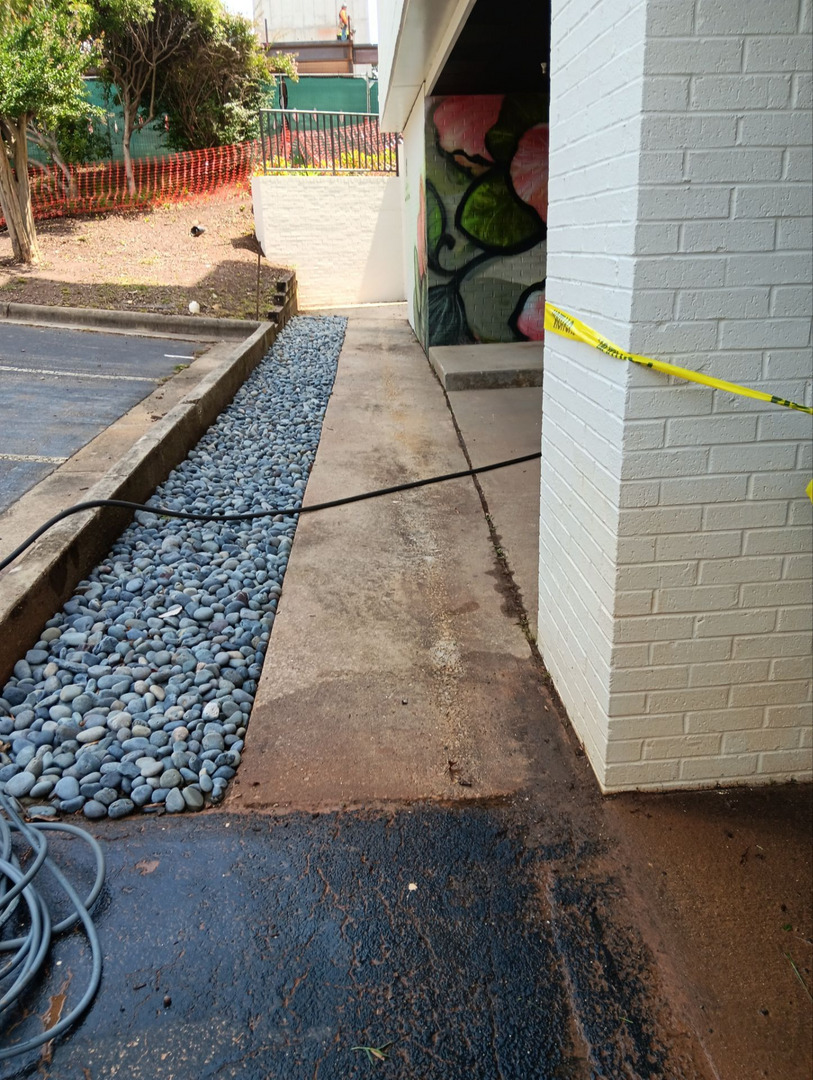 With experience and knowledge on our side, we applied a specialized commercial-grade degreaser. This solution effectively emulsified the stubborn stains, making it easy for the pressure washing to rid the surface of these blights completely. All obstacles encountered were smoothly overcome, ensuring a successfully cleaned parking lot.