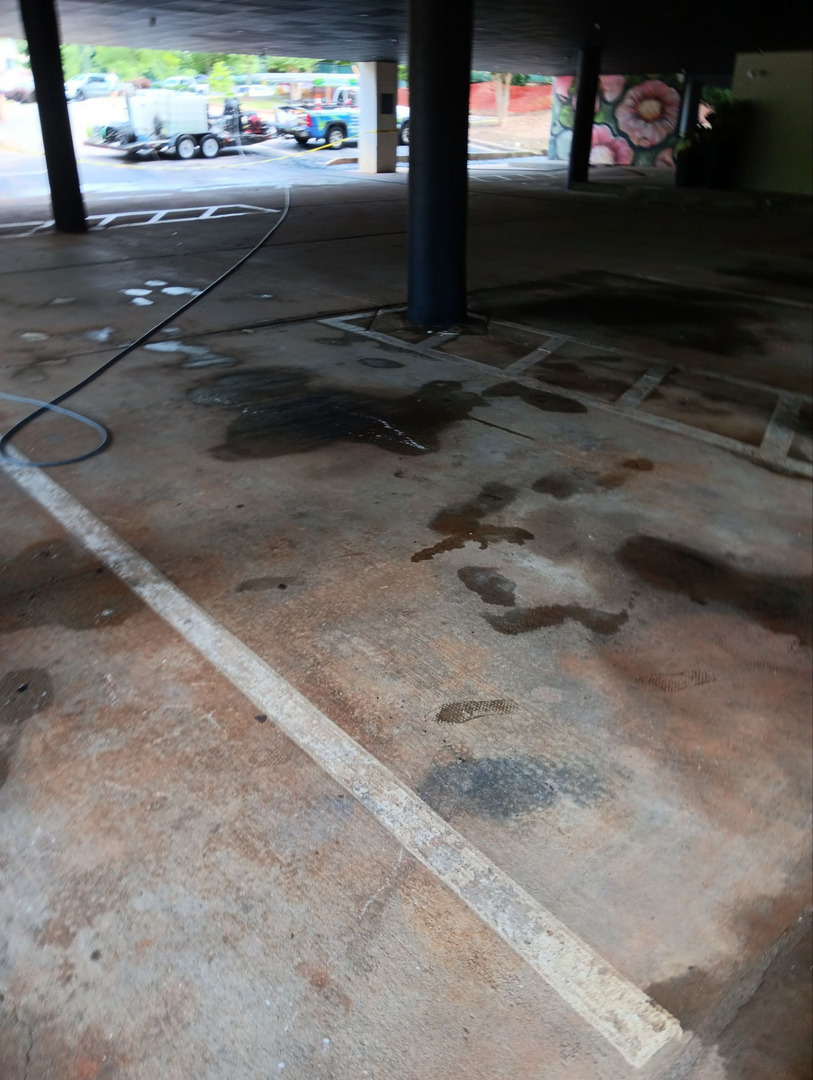 Following the initial assessment, we executed the commercial parking lot cleaning using the best techniques per stain type. After completing the primary procedures and achieving a clean surface, some minor touch-ups were performed to ensure perfect results.